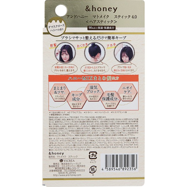 水分量14%の髪に着目した「保水オーガニック美容」のブランドから発売したマスカラタイプのスタイリングスティックです。ジェル状で髪にスッとなじみ、簡単にヘアスタイルがセットできます。気になるアホ毛やまとめ髪をした際のおくれ毛、前髪を簡単に思いのままに整えます。マスカラタイプなので、ポーチに入れて持ち運びにも便利。使用時に手が汚れる心配もありません。ダマスクローズハニーの香り(100%モロッカンオーガニックオイル使用)。