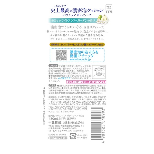 바운시아 바디소프 화이트 플라워 가든향 펌프 480ml 우유비누 쿄진샤