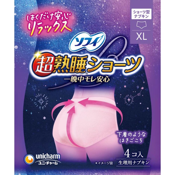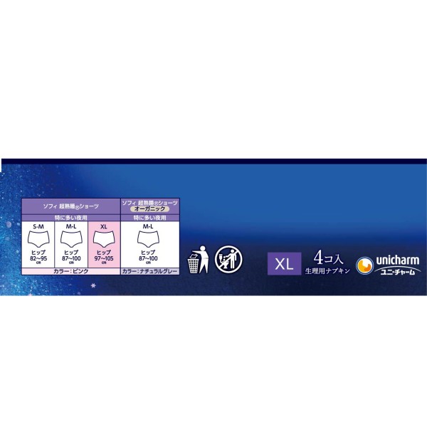 소피 초숙면 쇼츠 특히 많은 밤용 XL(생리용품 냅킨) 4매 유니참 > 소피 초숙면 가드