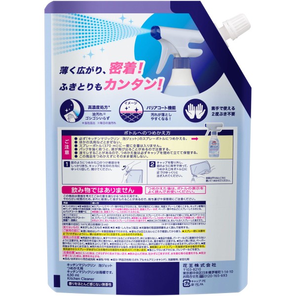 키친 매직 클린 거품 제트 리필용 630ml 카오 > 주방용 세제