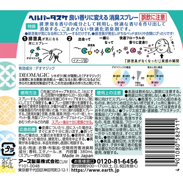 헬퍼 타스케 좋은 향기로 바꾸는 소취 스프레이 쾌적 플로럴향 개호용품 소취제 380ml 어스제약 > 탈취제
