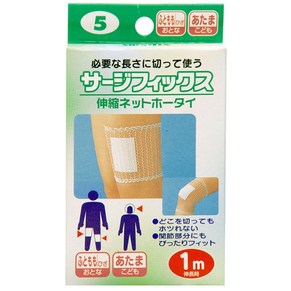 ナイロン・弾性ゴムから成るチューブ型のネット状ホータイです。