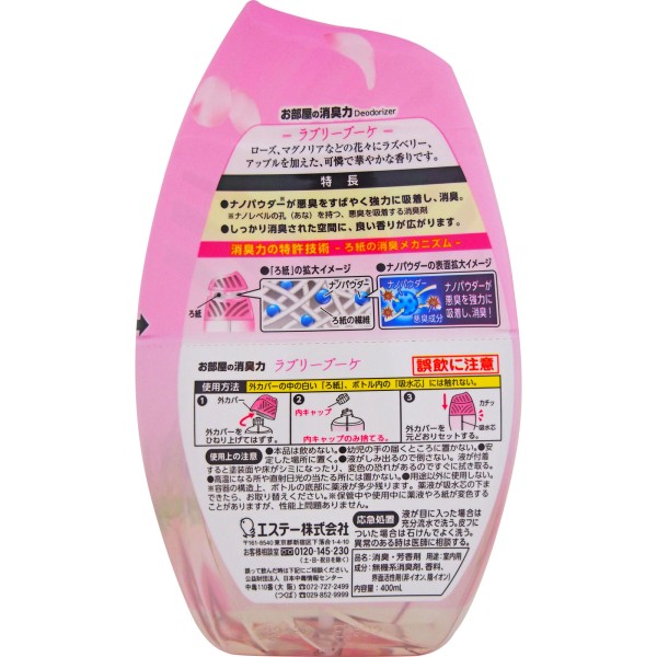 방의 소취력 소취방향제 방용 거치형 러블리 부케향 400ml 에스테 > 놓는 타입