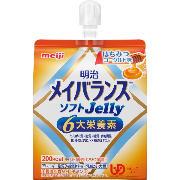 少量高エネルギー/ユニバーサルデザインフード/栄養素/おいしい/選べるおいしさ少量高エネルギー設計(200Kcal/125ml)、1個当たりたんぱく質7.5g、食物繊維2.5g/ユニバーサルデザインフード(UDF)区分の「かまなくてよい」食品形状/体に必要な6大栄養素(たんぱく質、脂質、糖質、食物繊維、10種のビタミン、7種のミネラル)を配合/まろやかでコクがあり、ほどよい甘さ/選べる8種類の味でおいしく栄養補給●食事が十分に摂れない時や、食事のバランスが崩れた時に、食事の代わり、または食事にプラスして飲むことで必要な栄養が補給できる、ゼリータイプの栄養食品。