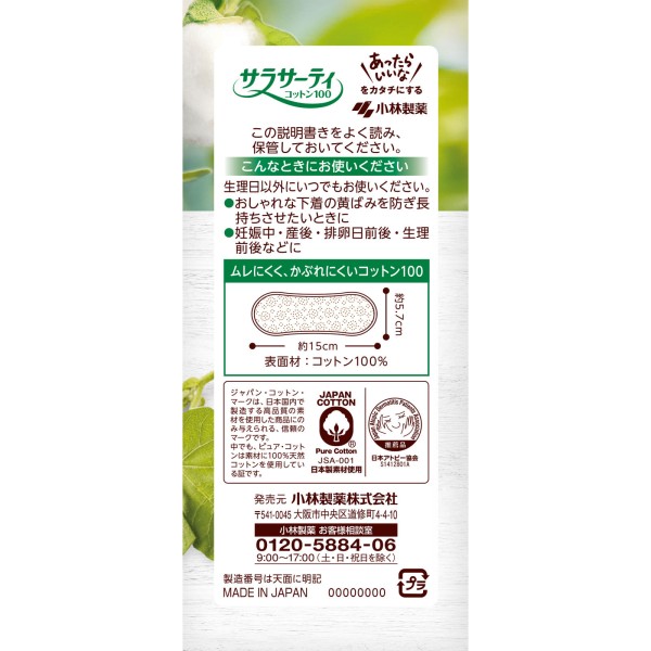 사라사티 코튼 100 무향 56매 고바야시제약 > 사라사티