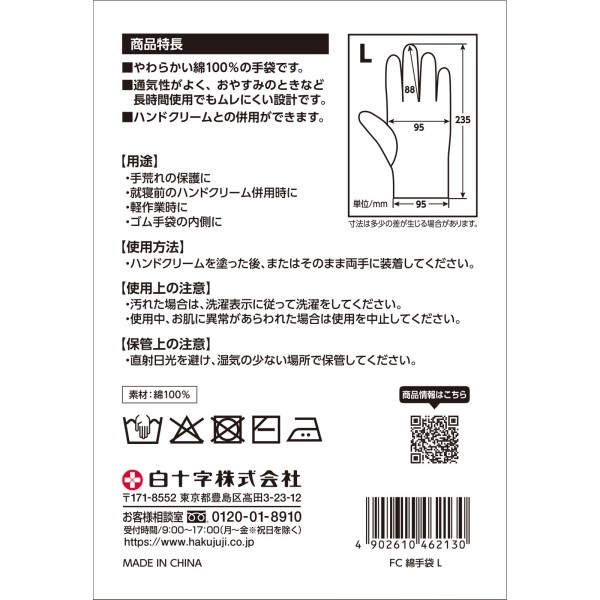 FC 면장갑 L 2매입 백십자 > 안대·면 장갑