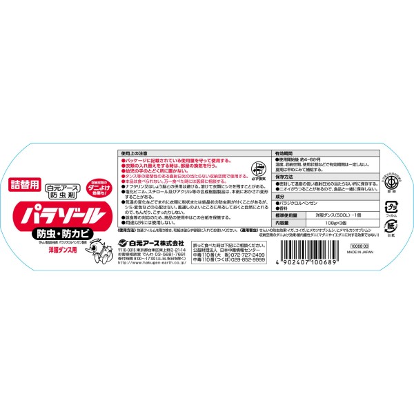 양복장용 파라졸 리필 3개 하쿠겐어스 > 개별 포장