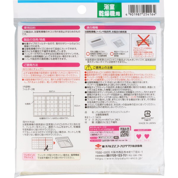붙이기만 하면 먼지 제거 필터 욕실 건조기용 2매 도요 알루미 호일 프로덕츠 > 필터 본체