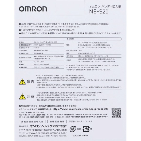 옴론 핸디 흡입기 NE-S20 NE-S20 옴론 헬스케어 > 흡입기