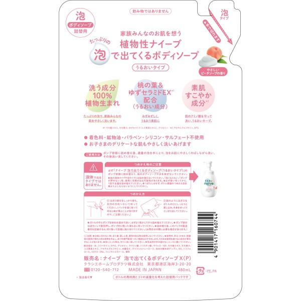 나이브 거품으로 나오는 바디소프(촉촉 타입) 리필용 480ml 클라시에 홈프로덕츠 > 거품 타입