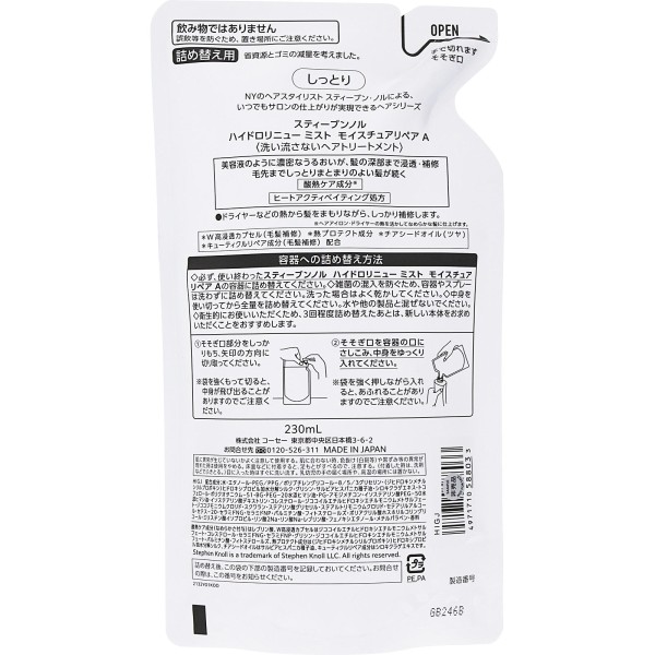 스티브 놀 하이드로 리뉴 미스트 모이스처 리페어 A(리필용) 230ml 코세 > 스티븐 놀