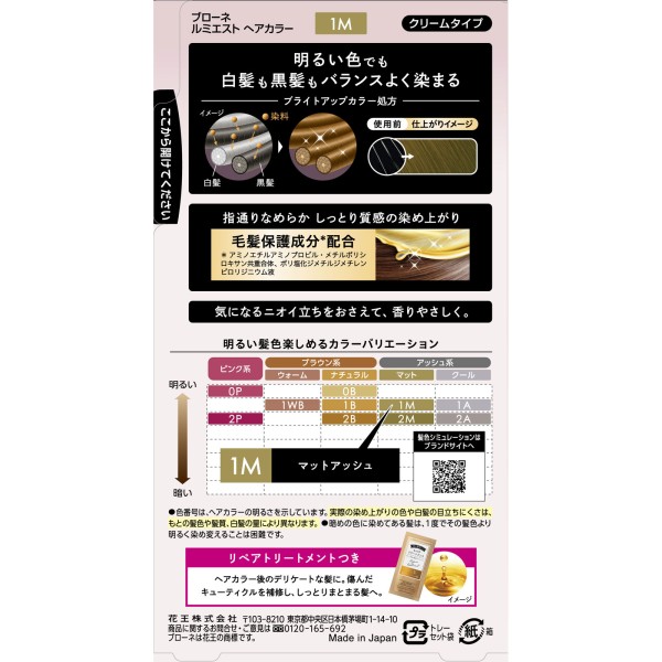 브로네 루미에스트 헤어컬러 1M 매트 애쉬 108g 카오 > 백발용 크림