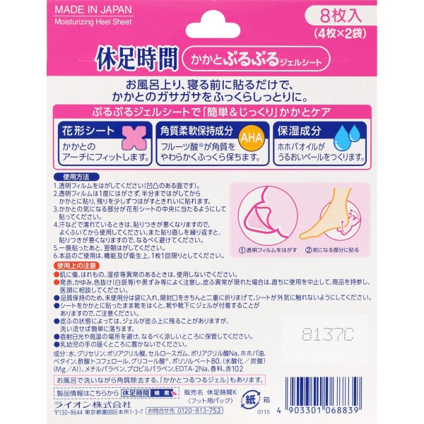 休足時間 かかとぷるぷる ジェルシート 角質ケア 足うら 8枚