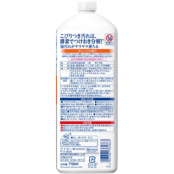 CHARMY Magica 효소+플러스 오렌지향 리필 대형사이즈 710ml 라이온 > 농축