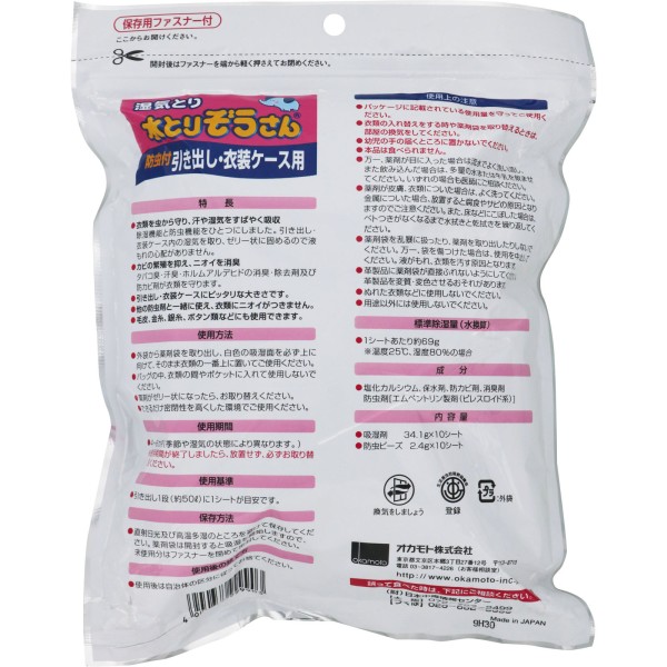 물수집 코끼리 방충 붙이는 서랍·의상 케이스용 10시트 오카모토
