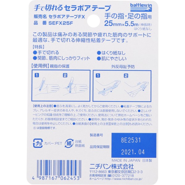 배틀윈 세라포아 테이프 FX 25mm×5.5m 니치반 > 테이핑 테이프 고정