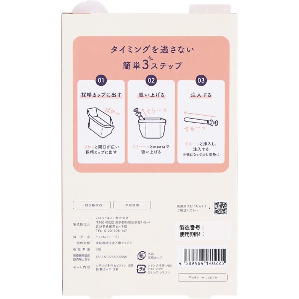 ●meetaは、忙しくて妊活タイミングが取りづらい、回数が足りない、気分が乗らない、苦痛など、何らかの理由で性交が難しいご夫婦のためのタイミング法のキットです。