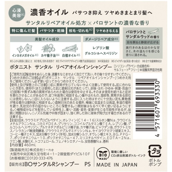 보타니스트 산탈 리페어 오일인 샴푸 460ml I-ne > 보타니스트