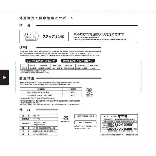 타니타 디지털 체중계 HD670WH 1대 타니타 > 체중계