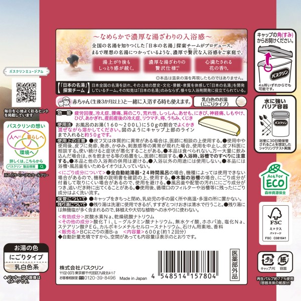 바스쿠린 극한의 탕 마음 채워지는 꽃향기 600g 어스제약 > 일반 약용(온욕) 바스클린