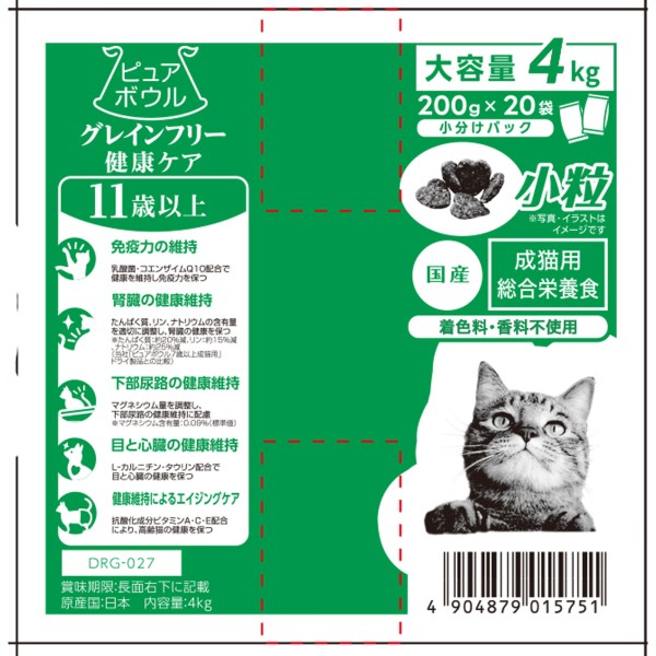 퓨어 보울 그레인 프리 11세 성묘용 대용량 4kg(200g×20) 펫 라이브러리 > 구르메 (기능성 식품)