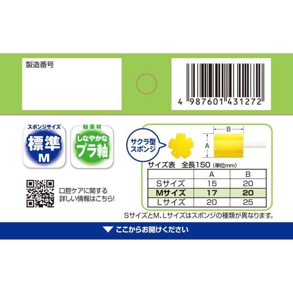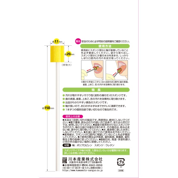 ・歯の表面、歯茎、口蓋部、舌の汚れを取り除くスポンジ歯ブラシです。