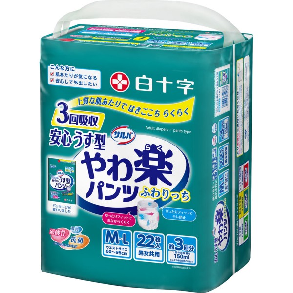 살바 부드러운 편안한 팬츠 안심 얇은 케이스 M-L 백십자 > 슬림형