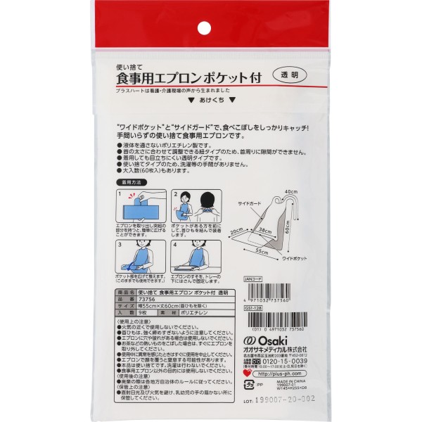 플러스하트 일회용 식사 에이프런 포켓 부착 9매입 오사키 위생재료 > 앞치마