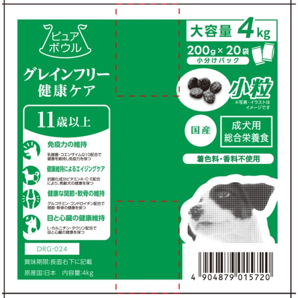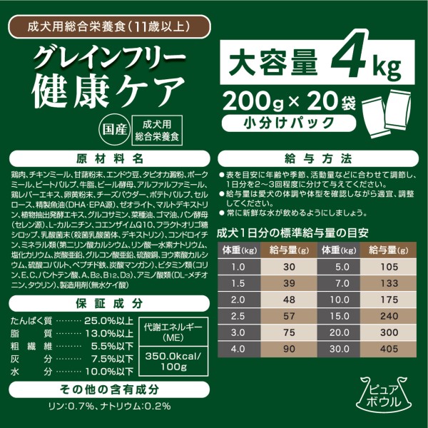 퓨어 보울 그레인 프리 11세 성견용 대용량 4kg(200g×20) 펫 라이브러리 > 구르메 (기능성 식품)