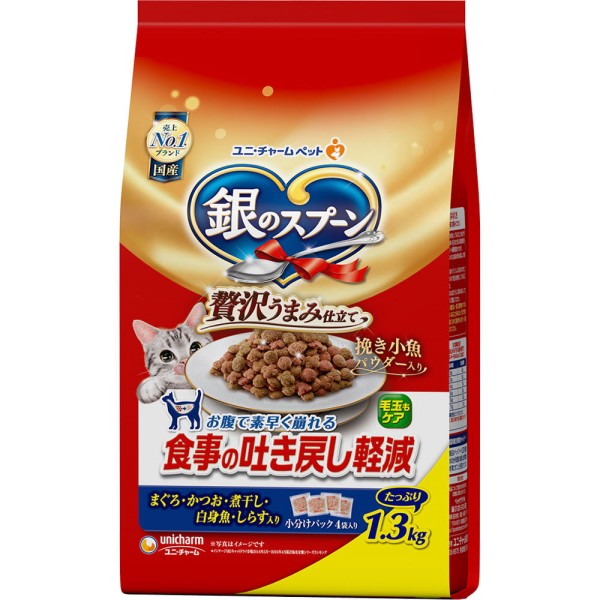은수저 풍성한 감칠맛 식사 역류 예방 사료 참치·가다랑어·멸치·흰살생선·잔멸치 함유 1.3kg 유니참 펫케어 > 구르메 (성묘용)
