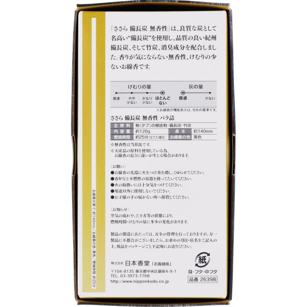 사사라 비장탄 무향 산포 검정 120g 니폰코도 > 향