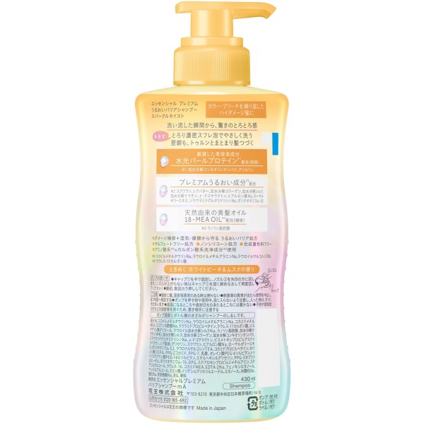 에센셜 프리미엄 보습 배리어 샴푸 스파클 모이스트 펌프 430ml 카오 > 에센셜