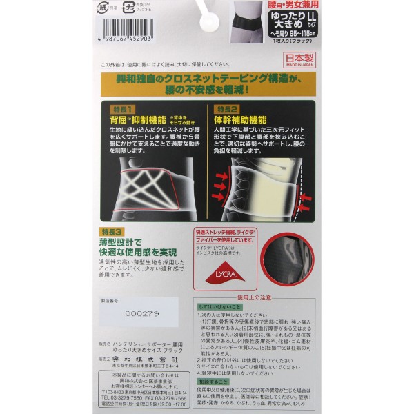 반테린코와 서포터 허리용 남녀겸용 블랙 넉넉한 큰 사이즈 코와 > 허리