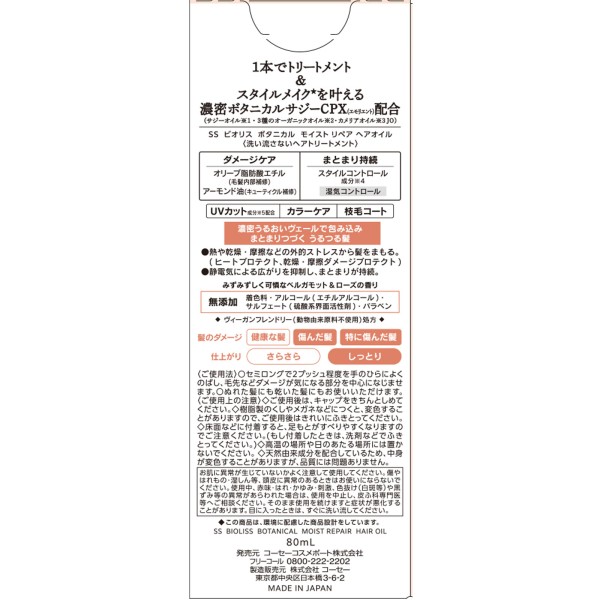 비오리스 보타니컬 모이스트 헤어오일 80ml KOSE 코스메 포트
