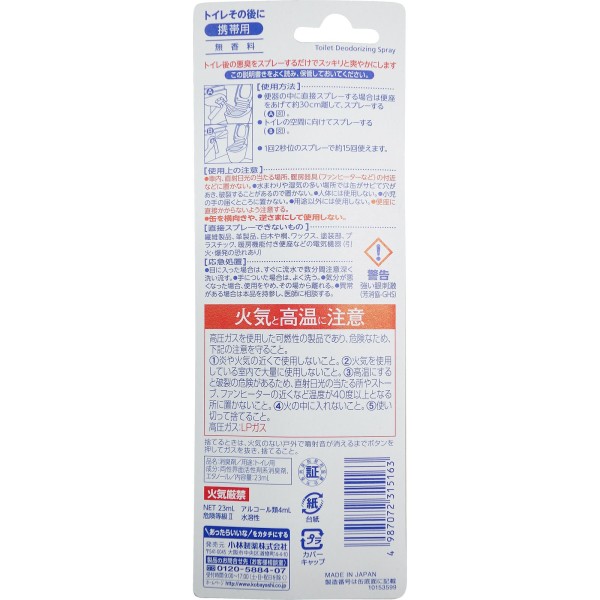 변기 사용 후에 휴대용 무향료 23ml 고바야시제약 > 화장실 관련
