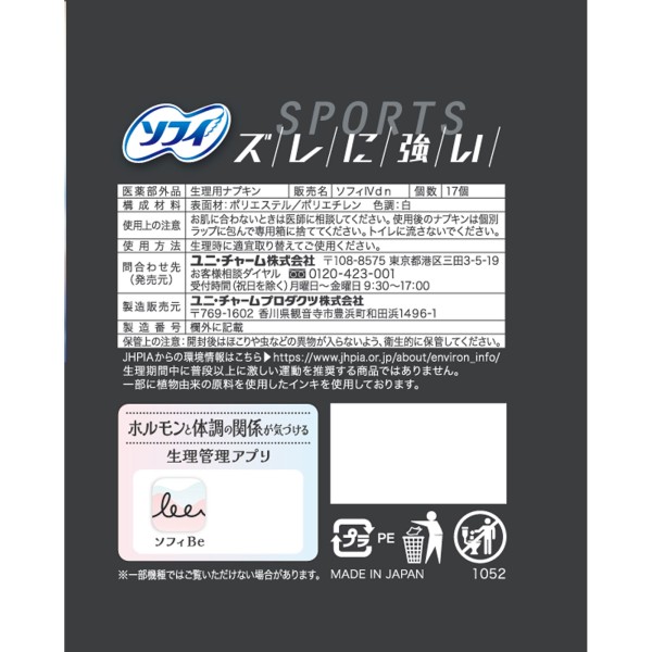 소피 SPORTS 300 날개 있음 17매 유니참