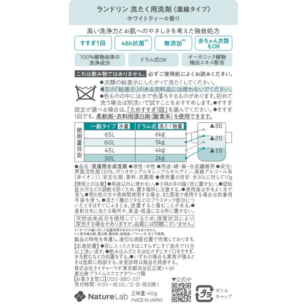 란도린 TEA 세제 화이트 티 향 410g 네이처 라보 > 섬세의류용
