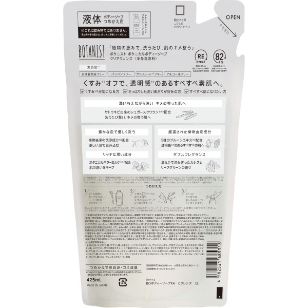 보타니스트 바디 소프 클리어 클렌즈 리필 425ml I-ne > 프리미엄 (800엔 이상)