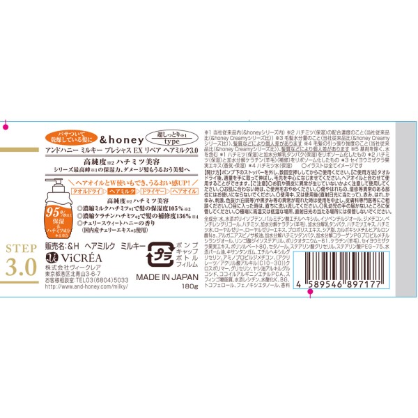 앤드허니 밀키 프레셔스 EX 리페어 헤어밀크 3.0 180g 주식회사 V크레아 > 앤드허니