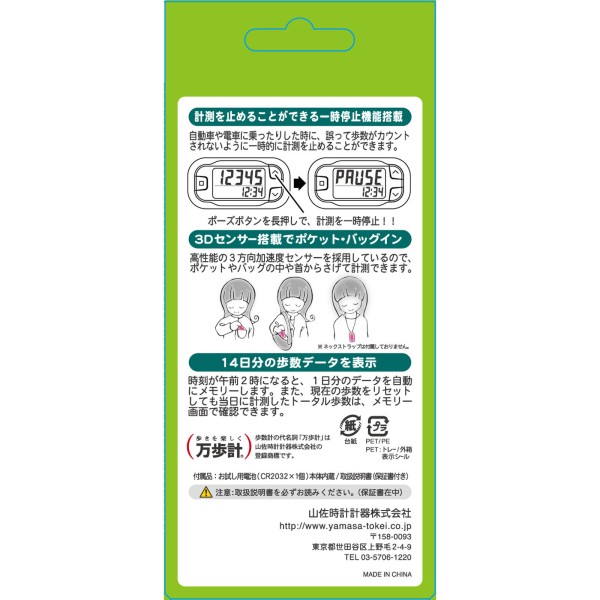 포켓 만보 편한 만보 EX-350(W) 화이트 야마사 시계계기 > 만보계