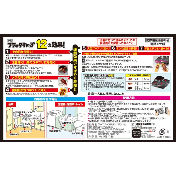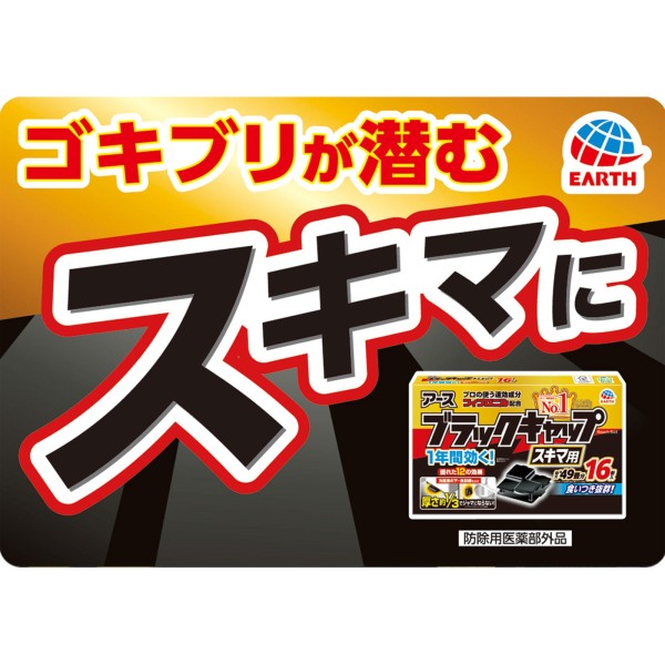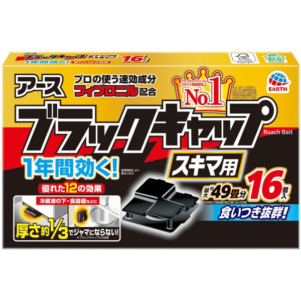 블랙 캡 1년간 효과! 틈새용 바퀴벌레 대책 틈새에 놓을 수 있음 구제용 독끼제 16개입 아스제약 > 독이제