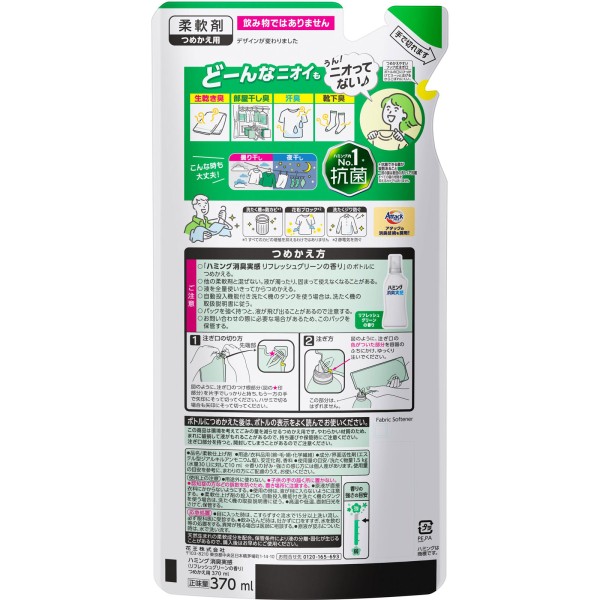 해밍 소취실감 리프레쉬 그린 향 리필용 370ml 카오 > 농축 방취