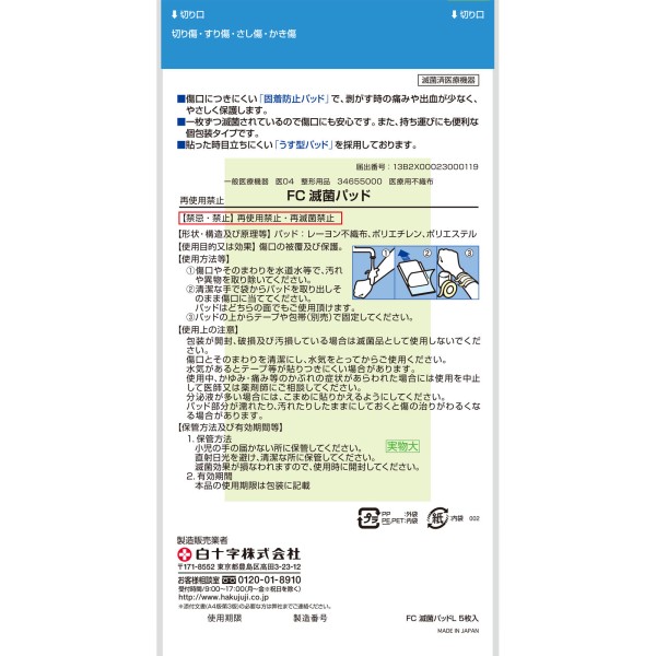 FC 멸균 패드 L (일반 의료기기) 5매 백십자 > 멸균 패드