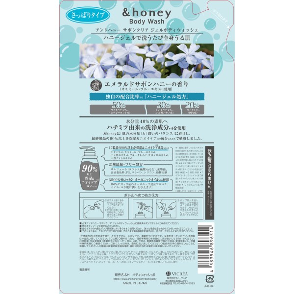 앤드허니 사봉 클리어 젤 바디 워시 리필 440ml 주식회사 V크레아 > 프리미엄 (800엔 이상)