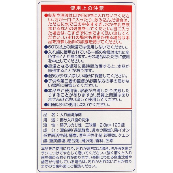 MK 덴트 아쿠아 부분 틀니용 세정제 120정 라이온 케미컬 > 틀니 세정제(부분 틀니용)