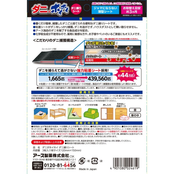 다니가 호이호이 진드기 잡기 시트 진드기 제거 진드기 제거 시트 대책 3매 아스제약 > 포획·구제