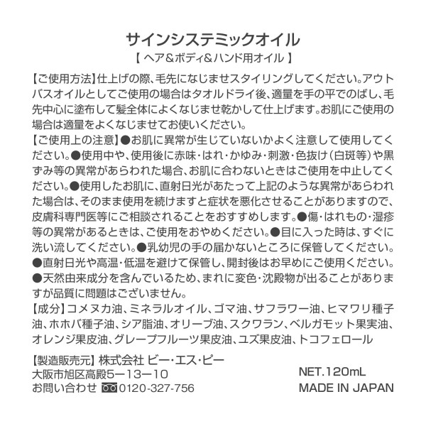 사인 시스테믹 오일 120ml BSP > 기타 헤어 오일·리퀴드