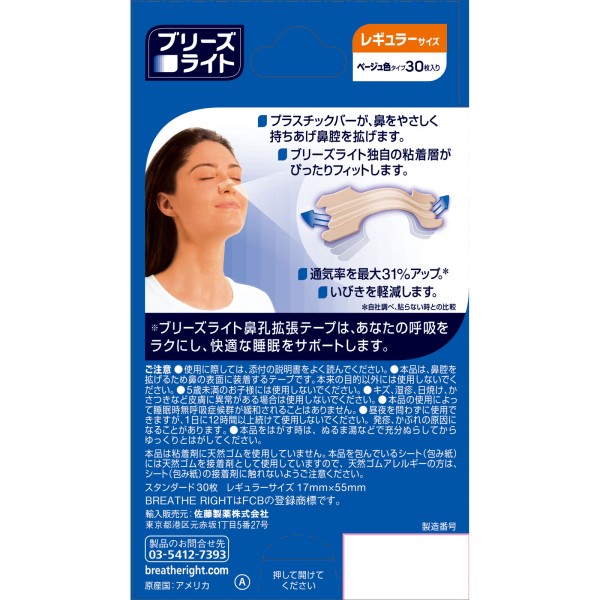 브리즈라이트 스탠다드 레귤러 30매입 사토제약 > 비강 확장 테이프