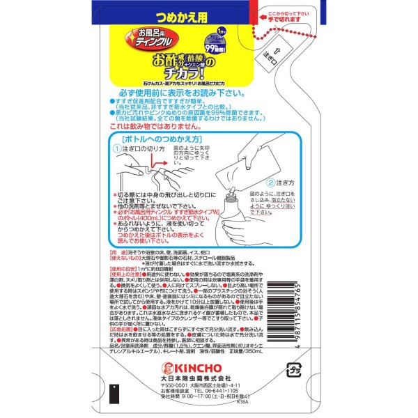 욕실용 팅클 욕실·욕조 세제 물때 제거 리필 350ml 다이니혼죠추기쿠 > 욕실 클리너