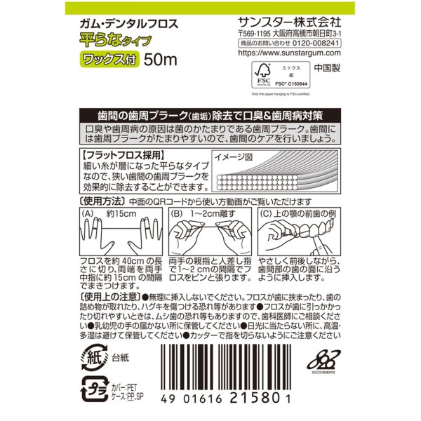 검&덴탈 플로스 왁스 플랫 타입 50m 썬스타 > 치실